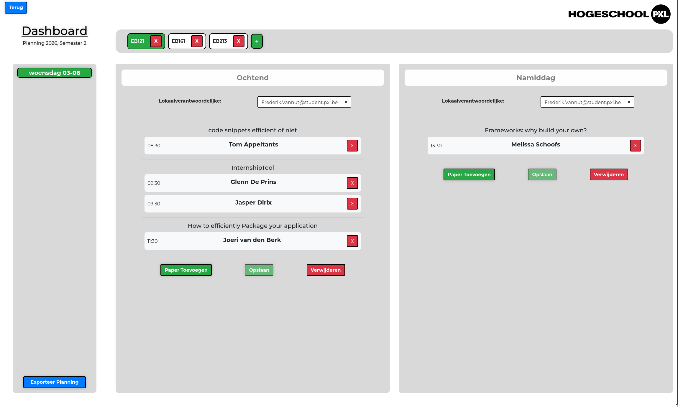 PXL Evaluation Manager is a specialized tool designed for PXL staff to streamline the planning and execution of project exams. This was a collaborative group project developed by a team of three. It represented one of my first major "requirements-to-product" experiences. This project also involved research into the architecture of building robust REST APIs and exploring their available alternatives to ensure a scalable and maintainable backend.